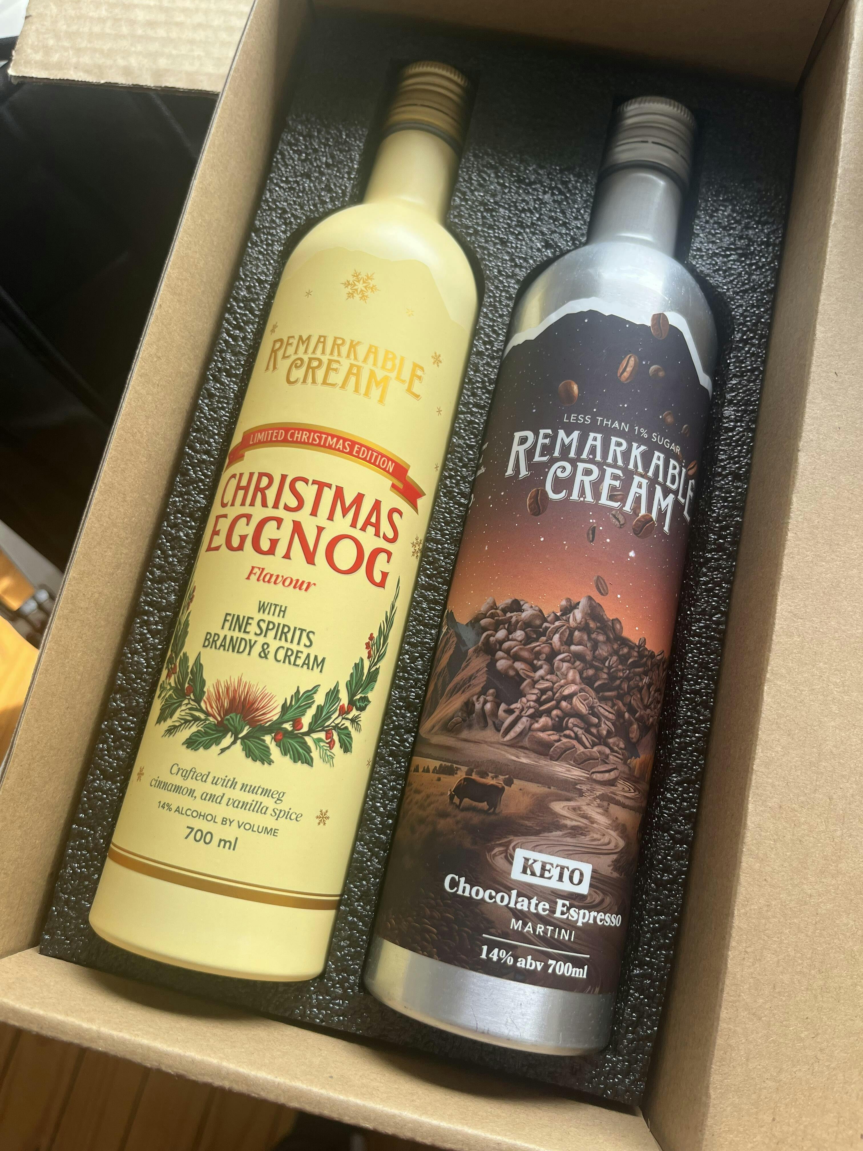 Celebrate Christmas with Remarkable Cream’s Limited Edition Christmas Eggnog — made with smooth New Zealand cream, fine spirits, and French brandy. Spiced with cinnamon, nutmeg, and vanilla, it captures the unmistakable flavours of Christmas in a glass.